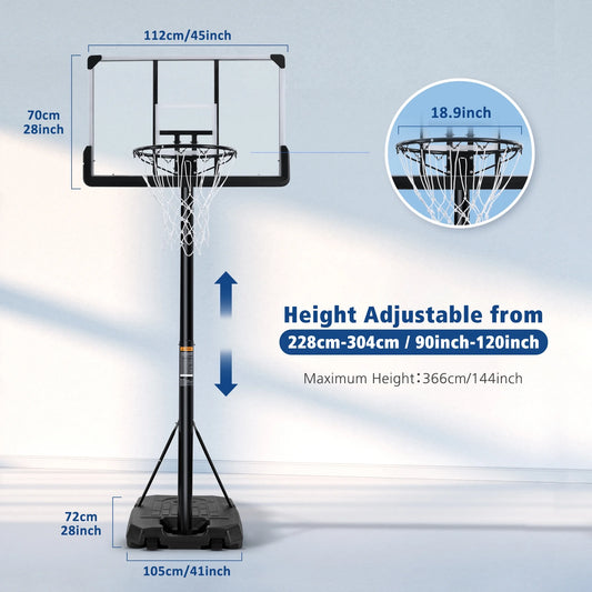 44In Basketball Hoop Portable Basketball System with Adjustable Height with Big Backboard and Large Base for Youth Adults Family Indoor Outdoor